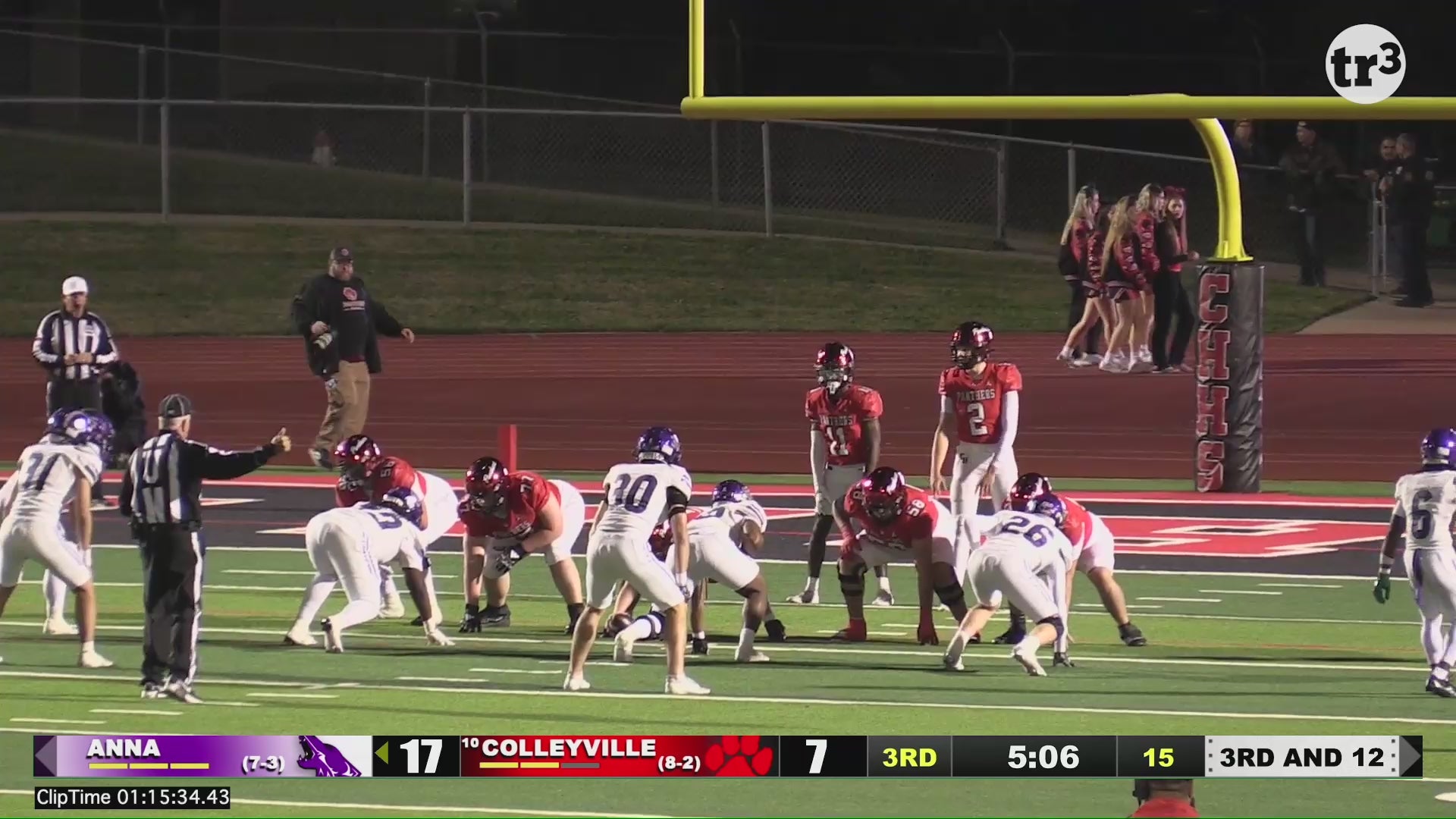 Colleyville v Anna - 1:15:34 Cville.2 scramble and 25 yard completion to Cville.1