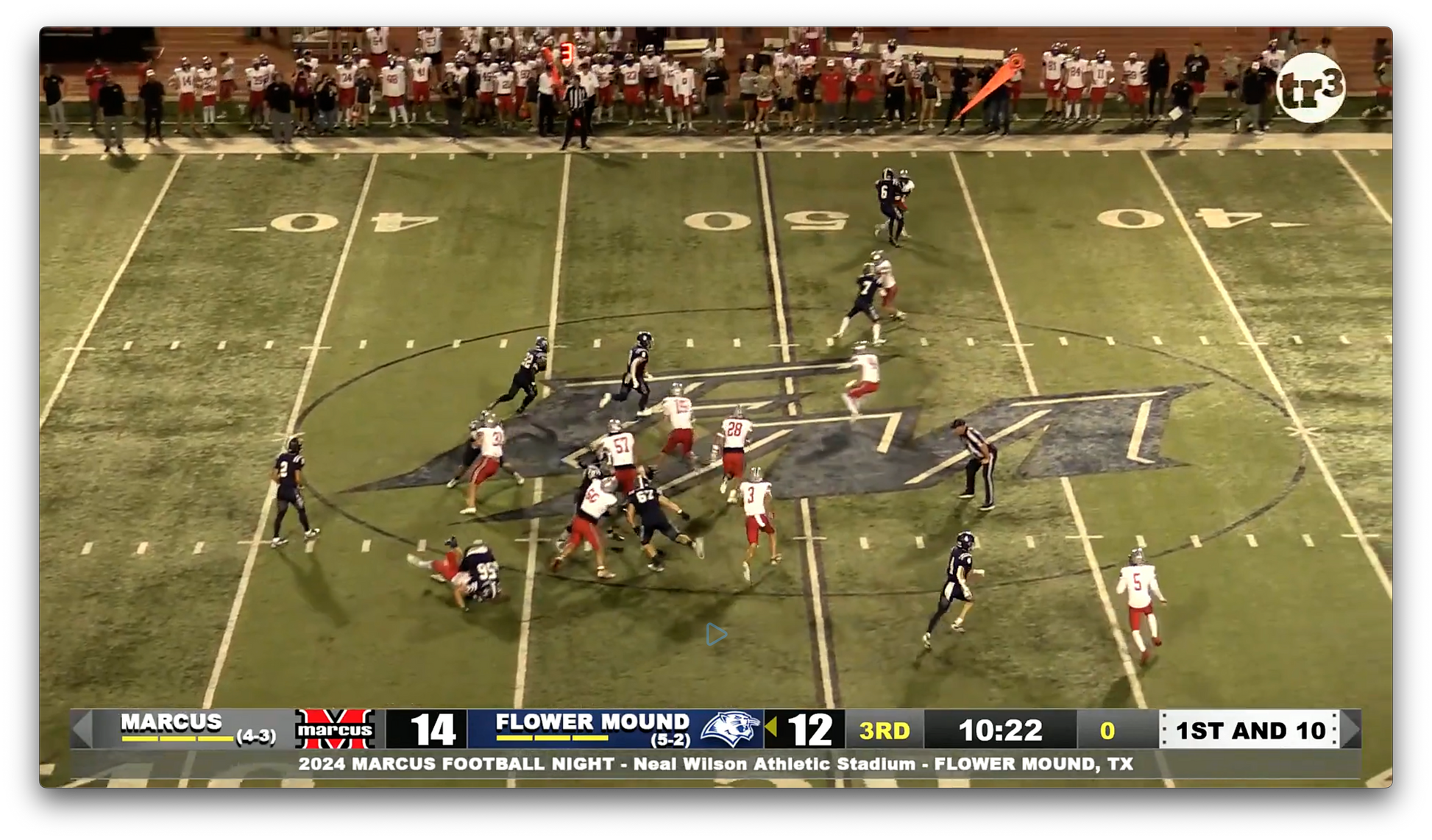 Great blocking opens a huge game for Flower Mound #22 Simpson to sprint for the TD